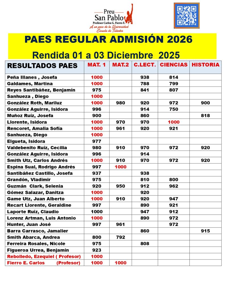 Nuestra Institución se ha esmerado en obtener buenos resultados, así es como hemos tenido alumnos en distintas generaciones con puntajes nacionales y seleccionados en los primeros lugares de su carrera preferida.